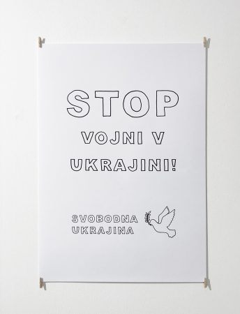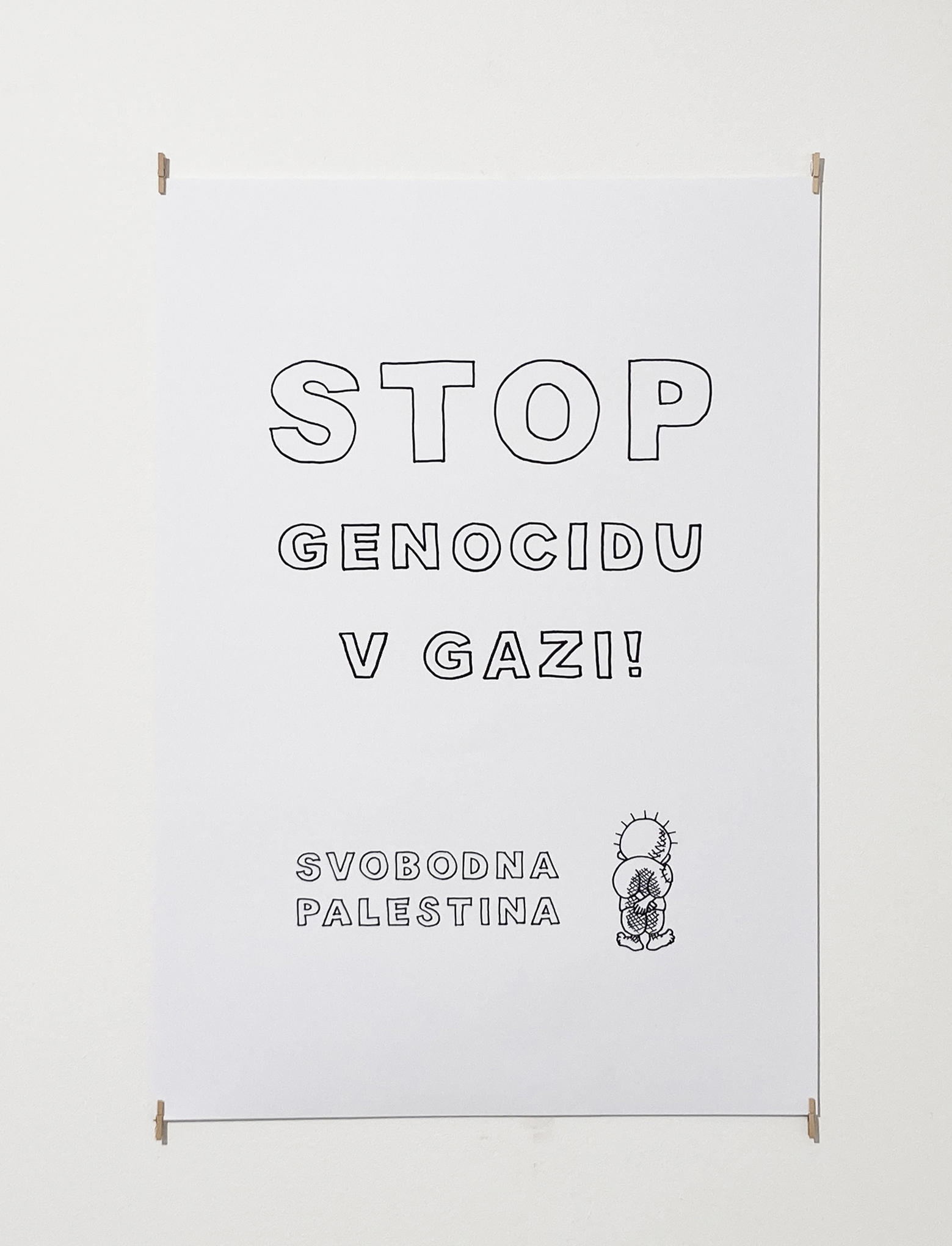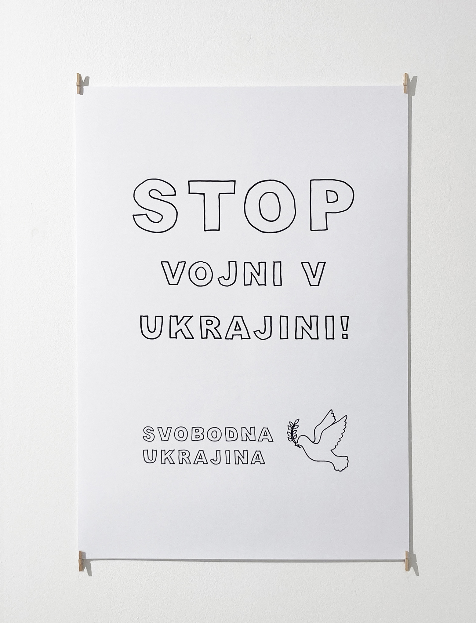 A call to end the war in Ukraine and to end the genocide in Gaza. Dove of peace for a free Ukraine and Handala, a symbol of the Palestinians, for a free Palestine.