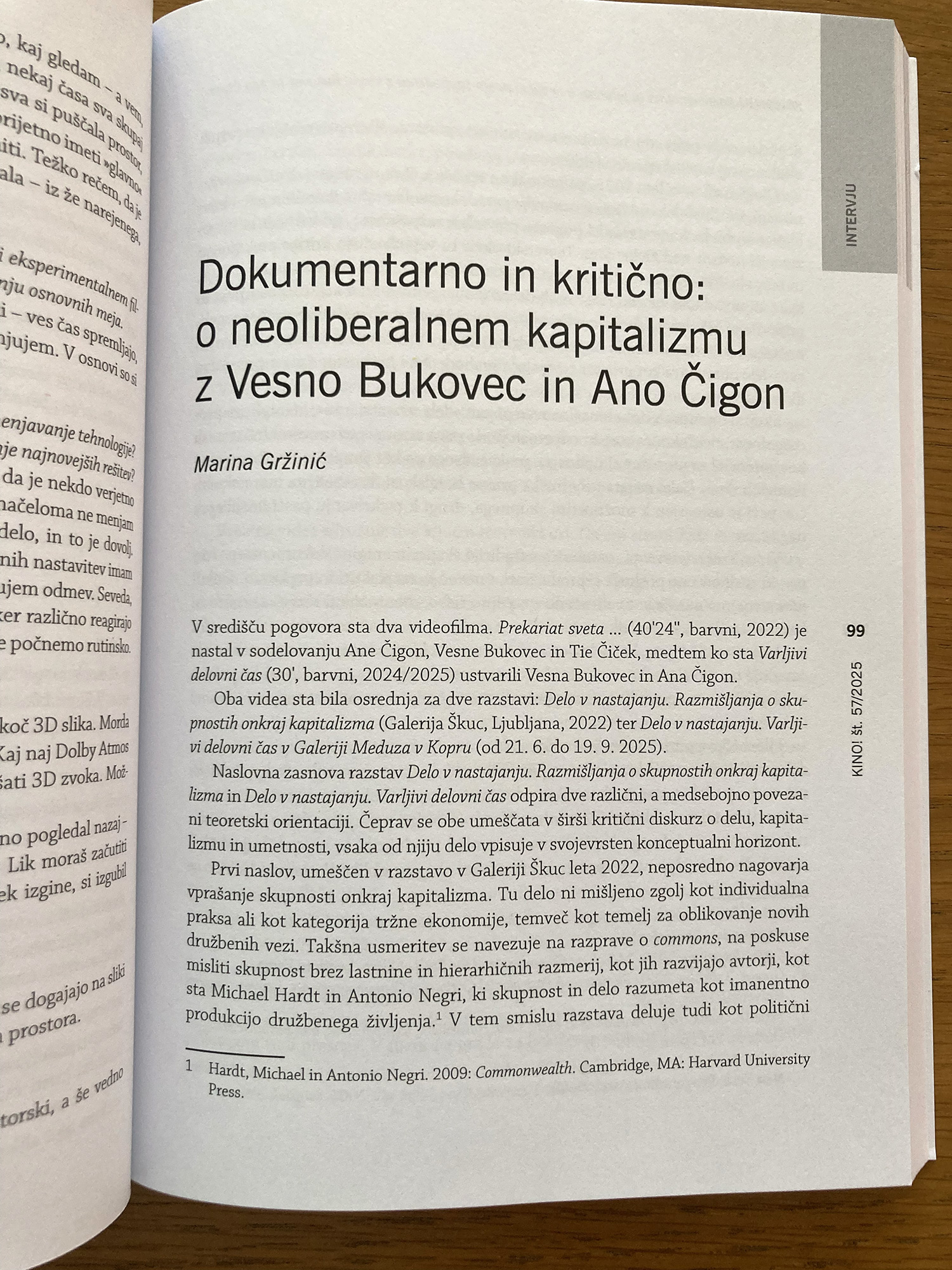 Umetnost – prostor radikalne zahteve: Vesna Bukovec in Ana Čigon v dialogu Intervju Marine Gržinić ob najini razstavi v Galeriji Meduza |